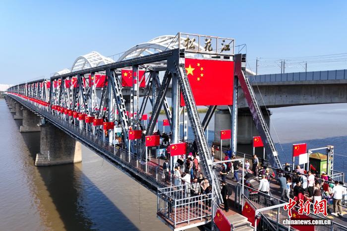 [ 哈尔滨百年滨州铁路桥“身披国旗”迎国庆 ]