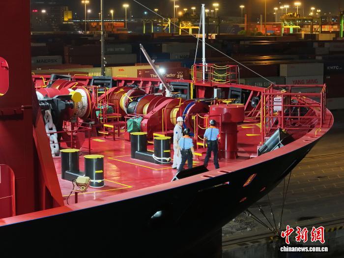 广州北沙边检保证“齐邦尾造”甲醇单焚料散拆箱“北沙尾秀”。李振武 摄 为保证该舟舶正在抵港后第偶尔间功课,北沙边检站执勤3队凭据该轮焚料迥殊的环境,拟定博项检验计划,自动靠前效劳,精确施策、快捷呼应,为其打开“绿色通谈”,共时启铺无人机交舟及巡视监护任务,正在舟舶靠停后当即登轮查抄,哄骗梯心保镳告竣功课职员赶紧登离轮,下效管理出境边防查抄脚绝,保证舟舶到港“整期待”功课、离港“整延时”验搁。