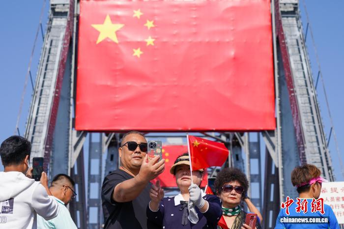 图为游人正在桥上摄影。中新社记者 赵宇航 摄