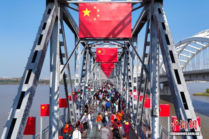 [ 哈尔滨百年滨州铁路桥“身披国旗”迎国庆 ]